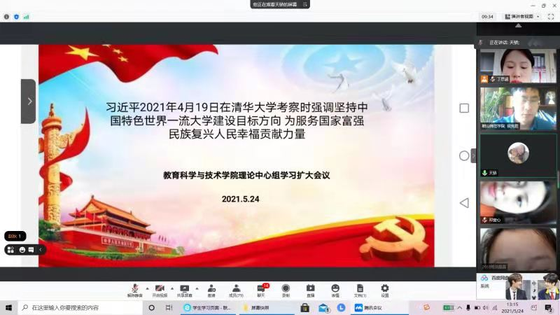 当日中午,教科院党总支组织全体党员师生通过腾讯会议继续学习《习近平总书记在清华大学考察时的重要讲话精神》及《习近平总书记关于师德师风的重要论述摘编》,党总支组织委员张雪及专职组织员丁思涵分别领学。