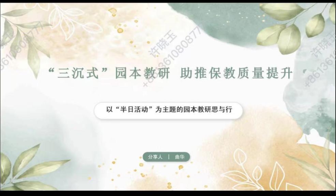 本次活动特别邀请鞍山市“十三五”、“十四五”教育科研骨干教师、鞍山市白鸽幼儿园保教负责人曲华老师和2024年辽宁省“半日活动评优”一等奖获得者、鞍山市白鸽幼儿园大班教研组长多玲玲老师。两位专家分别就《“三沉式”园本教研,助推保教质量提升》及《聚焦半日活动,实践评优要点》两个主题进行分享。