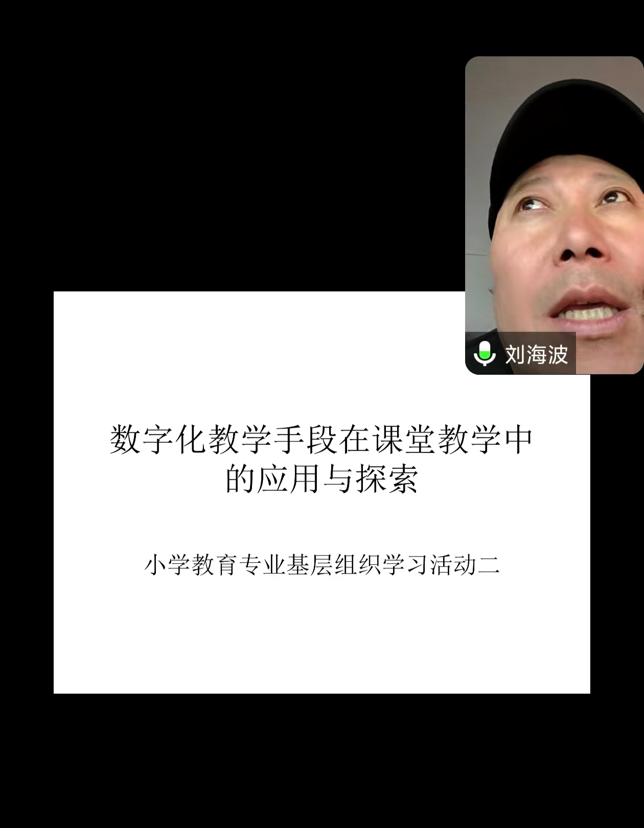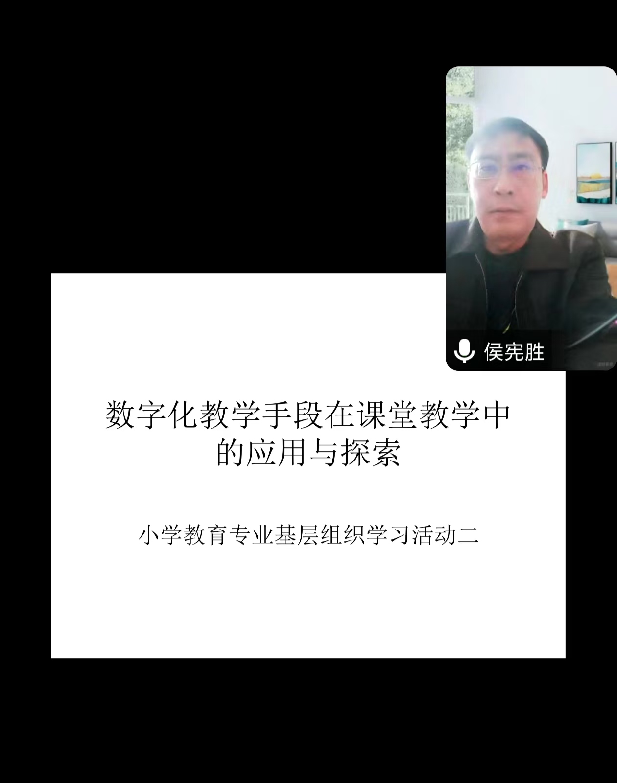 各位老师围绕基层数字化教学手段在课堂教学中的应用与探索进行发言和交流。侯宪胜老师主谈在当前信息化社会的背景下,数字化教学已经成为小学教育的重要趋势。老师围绕专业学生开展的大赛为例,说明了数字化在现实教学中的应用多以学习通、微课、多媒体等媒介展开,并鼓励各教师应结合自身擅长领域将数字化融入课堂教学当中。刘艳明老师则强调数字赋能教育的重要意义,并指出资源共享作为数字化教学的重要手段,对于提高教学质量、扩大优质教育资源覆盖面具有积极作用。刘海波老师结合自身地理专业的学习经历推出数字化在小学教育专业的精准化应用,说明了数字技术利于教学效率的提升。