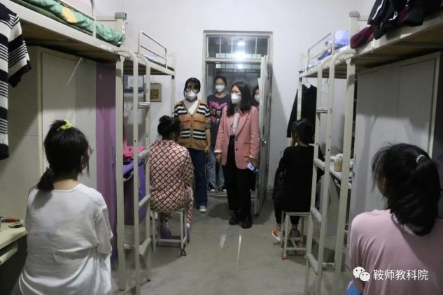 一年一度开学季,疫情防控进行中,为进一步了解疫情封校期间2022级新生的住宿和生活状况,引导新生尽快适应校园生活,解决生活中实际的问题。2022年9月25日晚,副书记徐海鹰老师、辅导员黄子琪老师、辅导员刘莹莹老师走访B座学生公寓和第四学生宿舍的新生寝室,为同学们带来了亲切的问候。