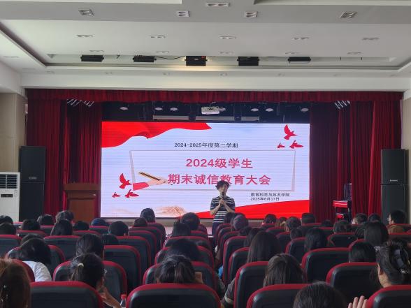 为强化学生诚信应考意识,严肃考风考纪,筑牢学生假期安全防线,6月17日和18日,教科院组织召开22、23、24级诚信考试与假期安全教育年级大会。教育科学与技术学院副院长陈亚囡、各年级辅导员出席大会。