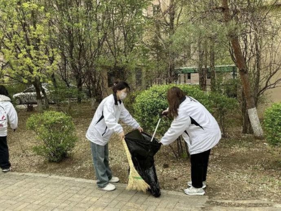 清洁家园崭新颜,志愿服务进社区。教育科学与技术学院“润德”青年志愿者于4月19日、4月25日、5月28日走进东亚第一城社区开展志愿清扫活动,进一步擦亮城市环境“底色”,提升城市文明“成色”。志愿者们身穿红马甲,手拿抹布、垃圾袋、扫帚、垃圾钳等清洁工具,深入社区垃圾存放点位及社区角落,开展拾取垃圾保护环境活动,共同建设环境优美生态宜居的美好环境。