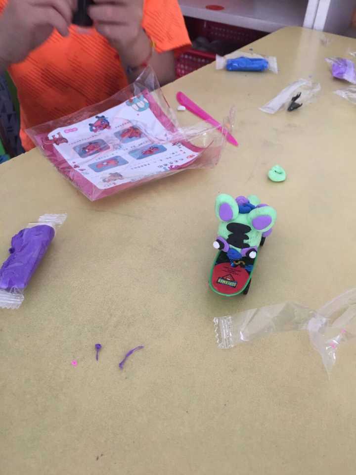 下午2时20分于B座楼下集合,负责人清点人数组织好人员步行去鞍钢十三幼儿园活动并于3时正式开展。活动中,孩子们充分发挥丰富的想象力,用灵巧的双手,用剪刀、塑料小刀等工具,加以辅助做出自己内心想象出来的木老虎滑板。孩子们专注地塑造自己心中的形象,橡皮泥在孩子们的手中渐渐有了木老虎的模样,不一会便在桌子上呈现出了孩子们富有创意的木老虎滑板泥彩。即使本次为这学期最后一次活动,教科院青年学子们也以热情的心对待此次泥彩助教活动。