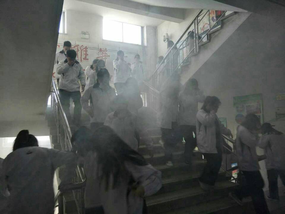 “听到哨声,同学们人头涌动,立刻排好队,沿着安全通道往楼前跑,在教科院保卫部学生干部的指导下,同学们从容不迫,有条不紊,迅速撤离到了安全地带——操场。集合完毕并给大家演示了怎样使用灭火器。在大家的共同努力下,这次消防演练顺利完成。