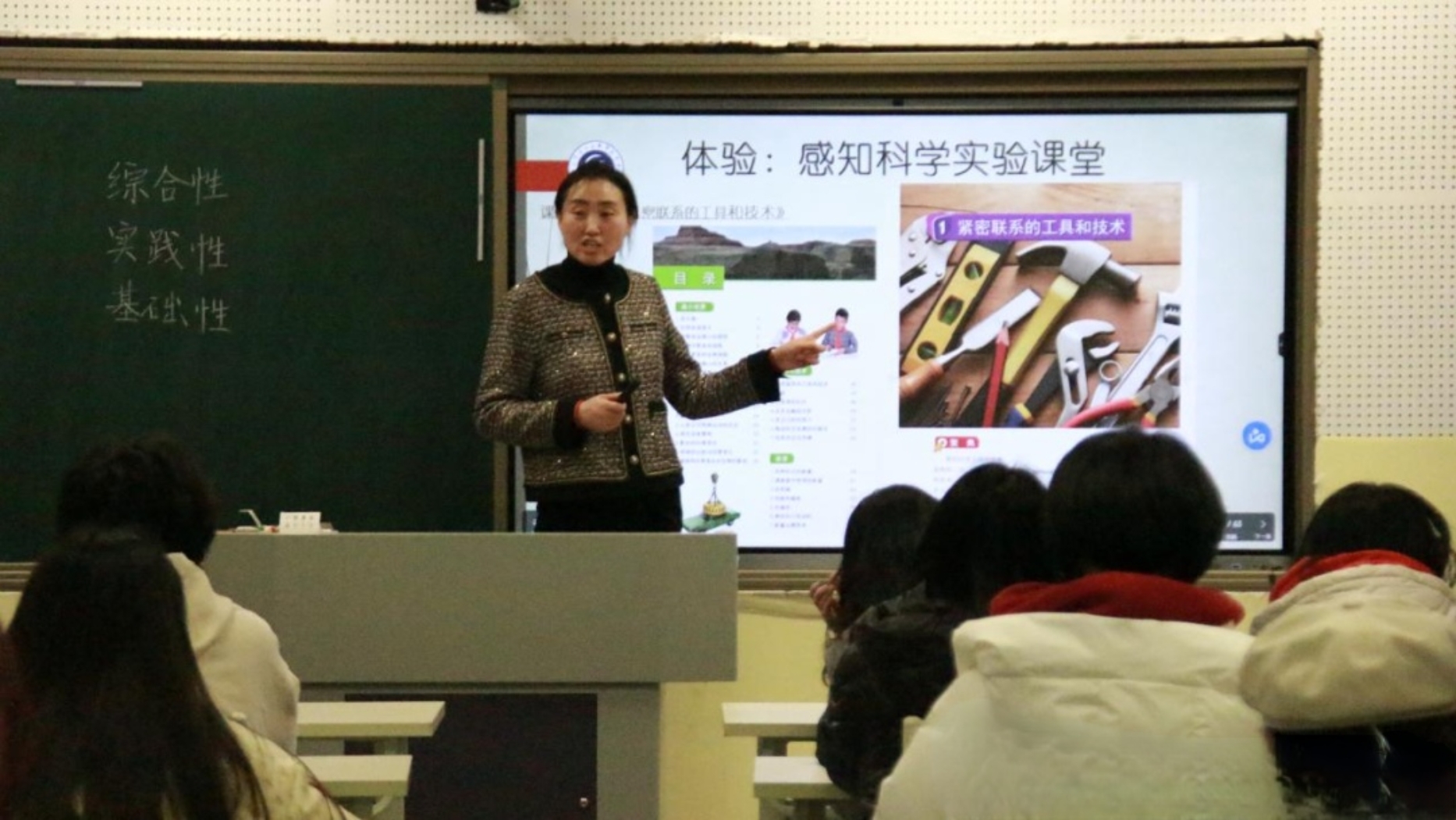随后,赵煜老师以实验教学的根本遵循、实验探究内容及要求、实验实践的基本思路、实验设计的通用方法、实验教学的发展趋势等五大方面为载体,通过讲解常见科学课堂教学类型和教学模式、如何在实验设计的策略中紧抓教学重难点和突破点等教学思路,引导在座的未来“小学教师”们在开齐、开足、开好国家课程标准规定实验中,不断丰富教学类型,用实验引领孩子走进科学,让孩子在欢声笑语中轻松学习新知,不断超越自我。最后,赵煜老师借助科学实验课堂教学实例,以如何制作水火箭以及省一等奖优秀课堂视频为教材,通过列举实验案例、讲解实验思路、描述试验方法等方式,引导同学们观摩课程形式,感受课堂氛围。