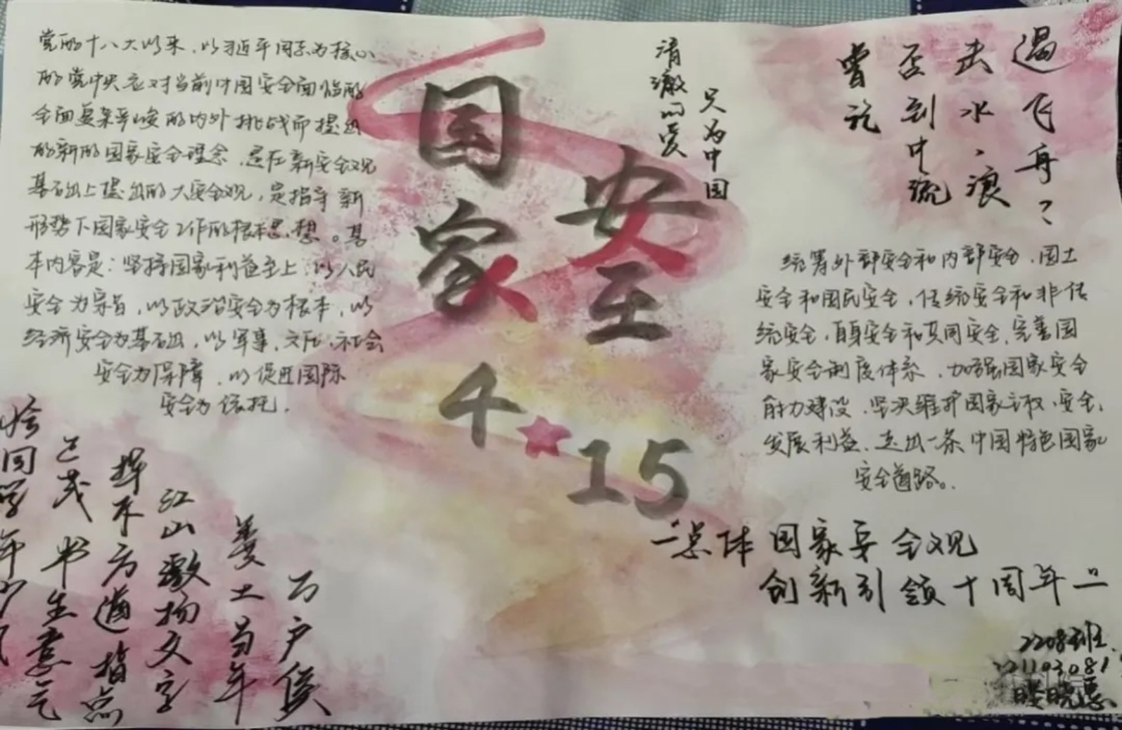 教科院团委宣传部开展“总体国家安全观,创新引领十周年”主题手抄报活动,参赛作品风格多样,内容丰富,营造浓厚的全民国家安全宣传氛围。