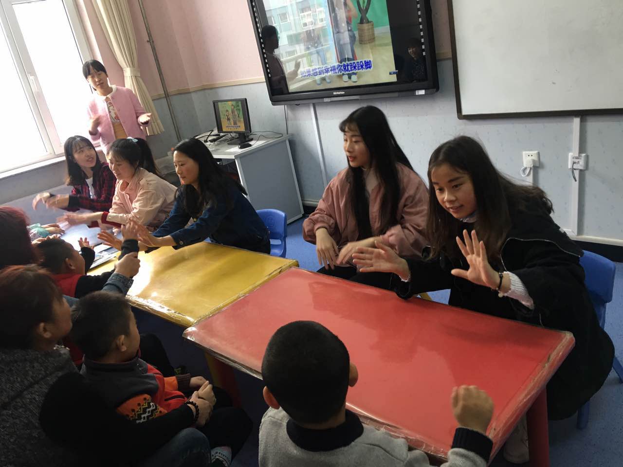 2017年4月6日,教科院为深入贯彻学校所提倡的“润德”精神,于本学期第5次走进了鞍山市聋哑学校星雨康复中心给那里的孩子们带去关怀。结合之前几次的授课,我院学生已经和孩子们建立起了一定程度的感情基础。每次我们的到来都会使孩子们倍感开心愉快。根据之前制定的教学计划,本周四上午是书法课,下午是舞蹈课。
