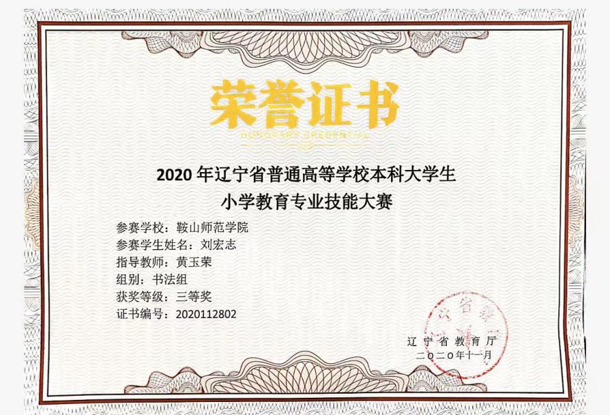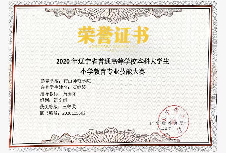 7.在2020年指导学生在辽宁省普通高等学校本科大学生小学教育专业技能大赛荣获三等奖
