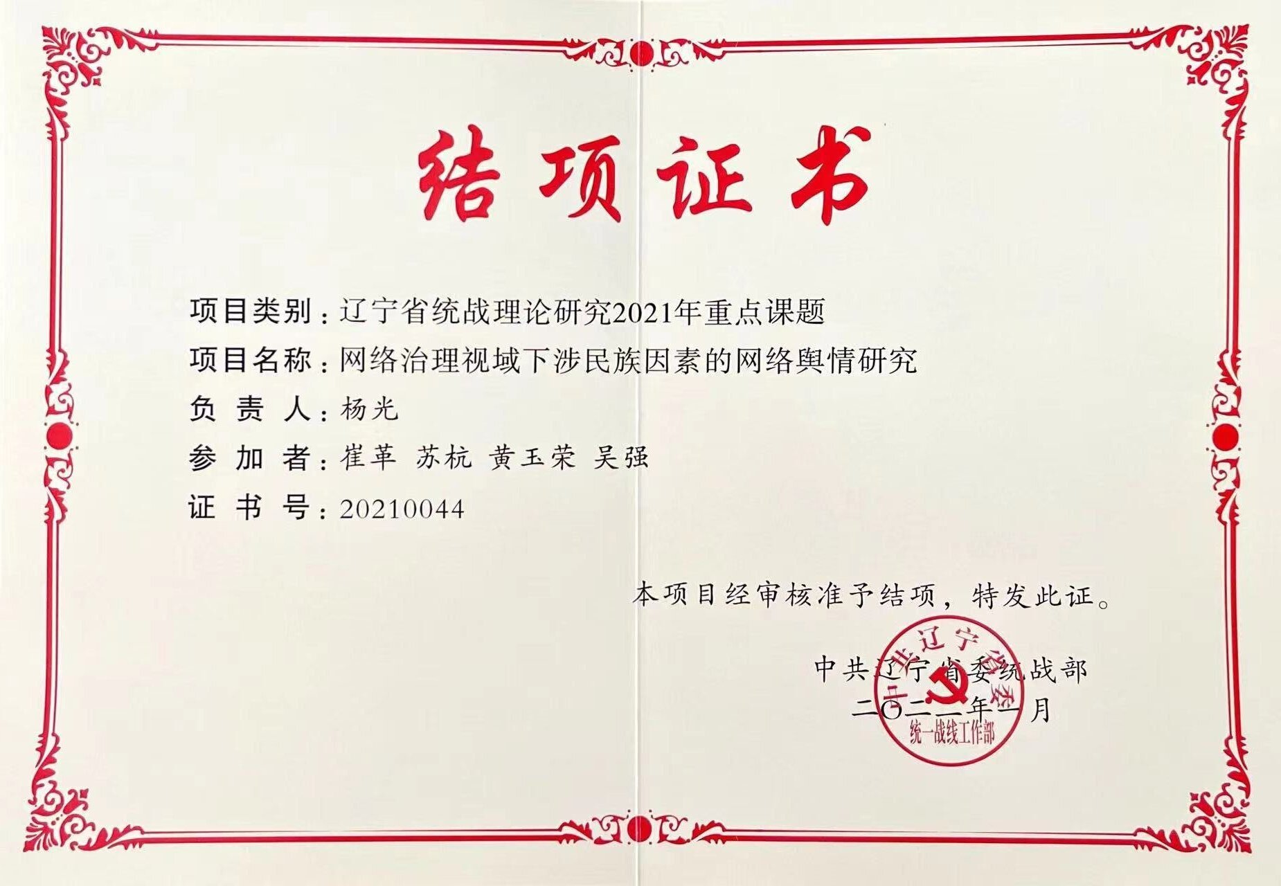 2.在2022年通过辽宁省统战理论研究2021年重点课题结项。