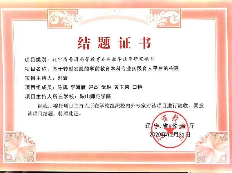 1.在2020年通过辽宁省普通高等教育本科教学改革研究项目结题。